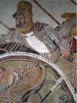 The battle began tentatively at first, then Alexander tried to find a favourable attacking point against the scythed chariots through an improvised movement. He extended and thinned out the right flank. The king expected a lateral attack and ordered the horsemen on the left flank to attack, so that a grim mounted battle took place. The hoped-for advantage from the scythed chariots never materialised. First, the lightly-armed soldiers decimated the charioteers with spears, then the phalanx formation opened to allow for the unhindered passage of the chariots, which were then annihilated in the background. But the king’s troops put the Macedonian phalanx under severe pressure and Alexander suffered heavy losses. But due to the advance of the Persian left flank, the Persian formation quickly fell into disarray. Darius was now only covered by his bodyguards. At this moment, Alexander launched the attack on the Persian centre with his cavalry, coming dangerously close to Darius. He fled, although the battle was not yet over for the Persians, the resistance of his guard was of no avail, and he feared being killed on the battlefield. The flight of Darius was interpreted by his men as a sign to retreat, shortly thereafter the entire Persian front collapsed. But the fleeing king could not be captured by Alexander. After his victory, Alexander declared himself with great pride the “King of Asia”, and Darius lost his legitimacy following his flight and was later murdered by Bessus.